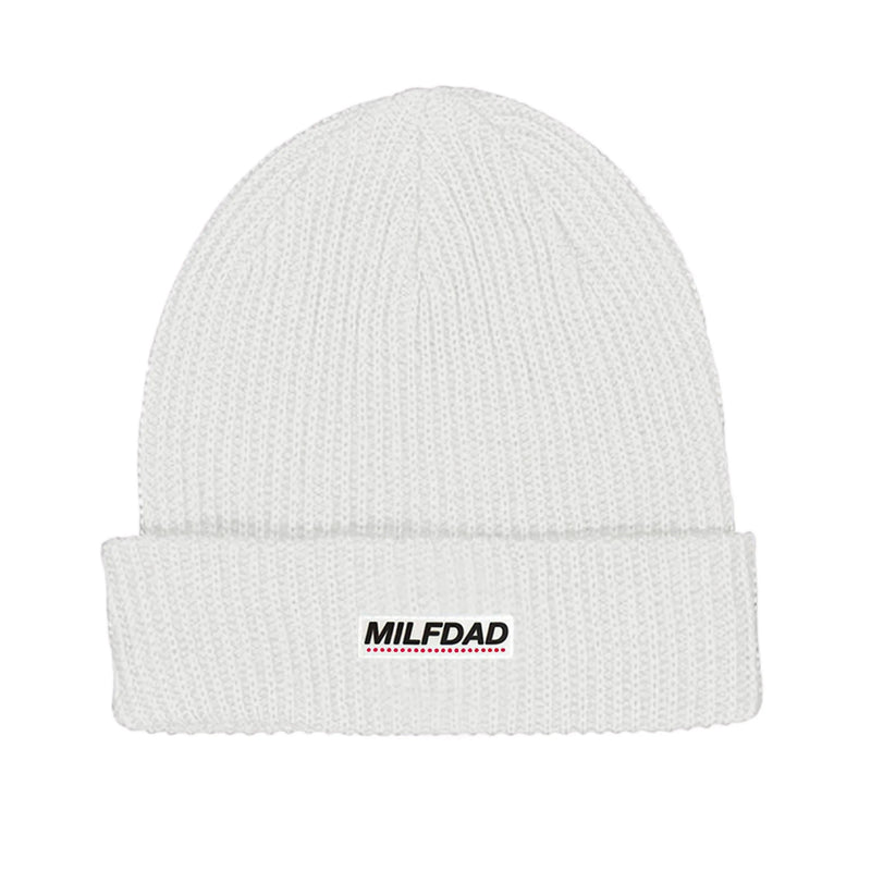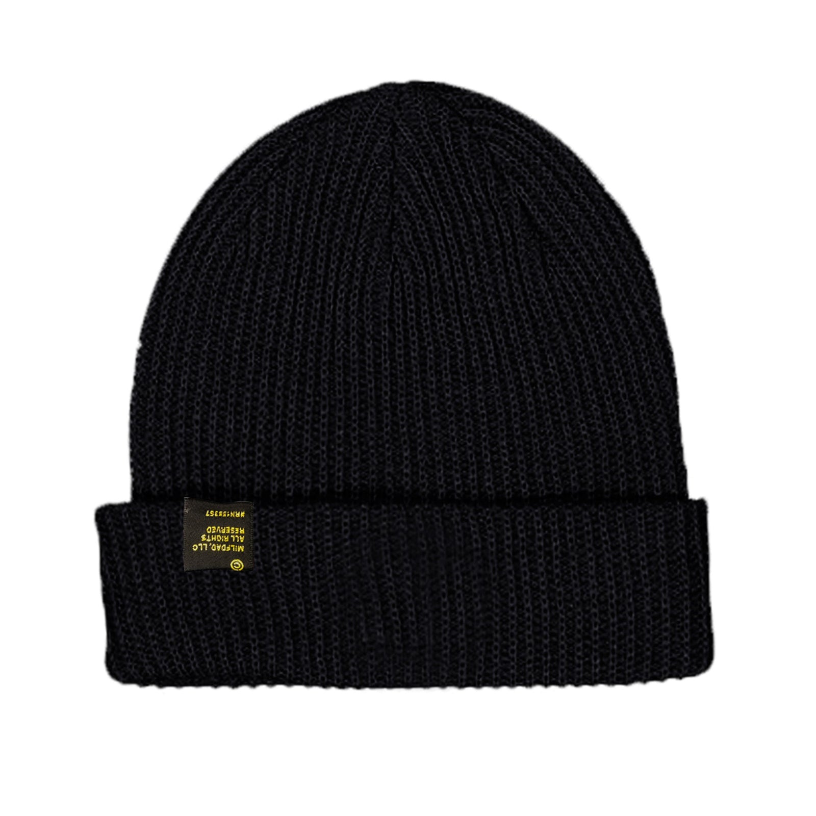 100% cotton knit beanie featuring rubber PVC logo at front and gold foil tag at back.