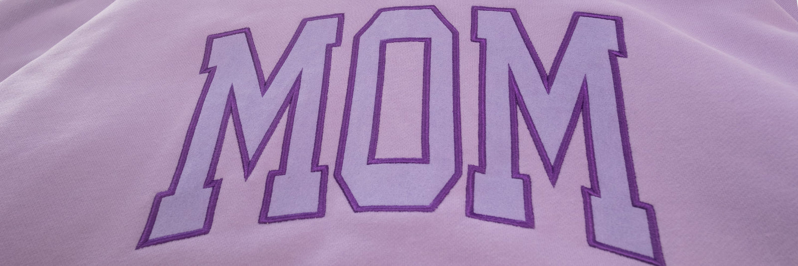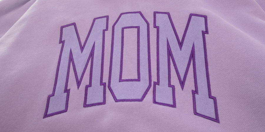 Our MOM Hoodies feature stitched varsity arc lettering. Choose from 12 colors, and pair with matching DAD Hoodies and Sweatpants.