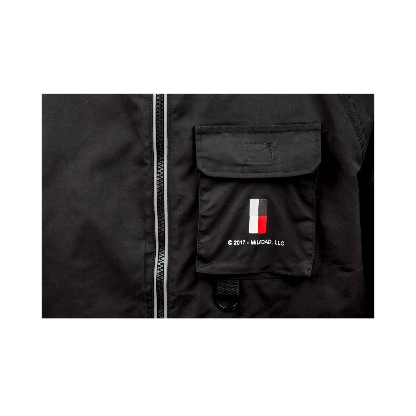 Inner mesh lined water-resistant windbreaker with two strips of 3M™ reflective piping along each side of the front zipper and across the back of the jacket. Side zipper hand pockets. Pull cords at the hood to tighten the fit. Printed logo at left thigh and rubber pvc logo at back neck.
