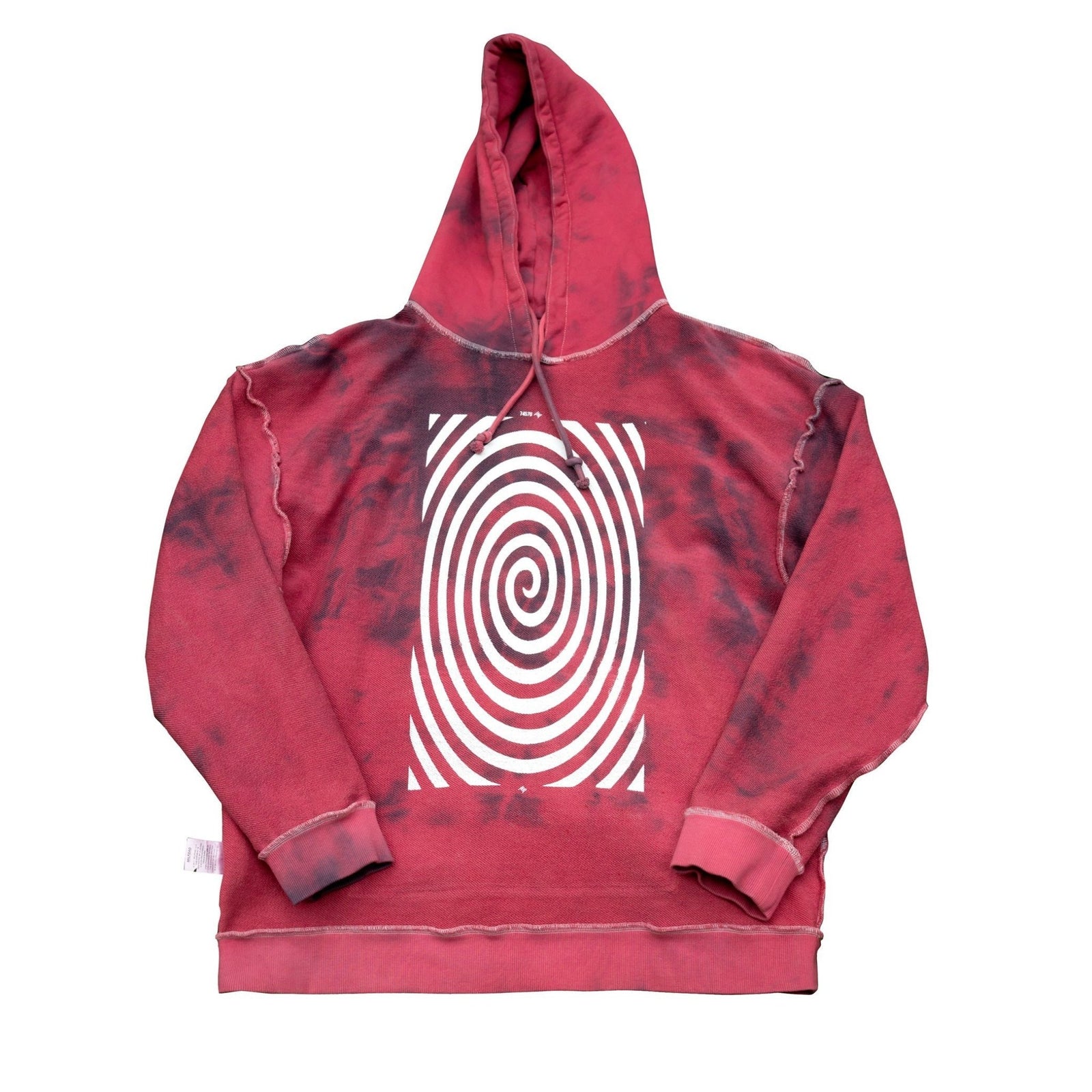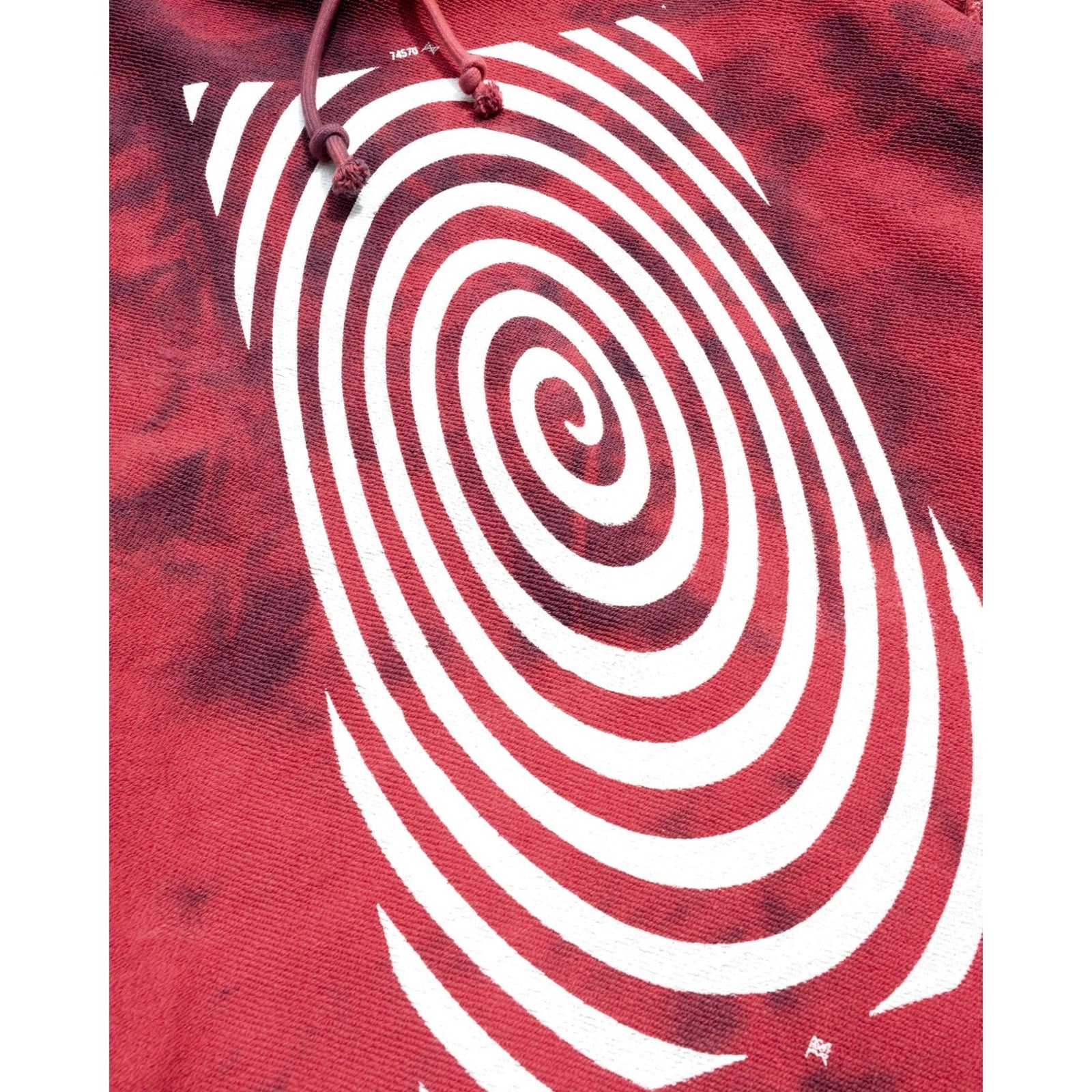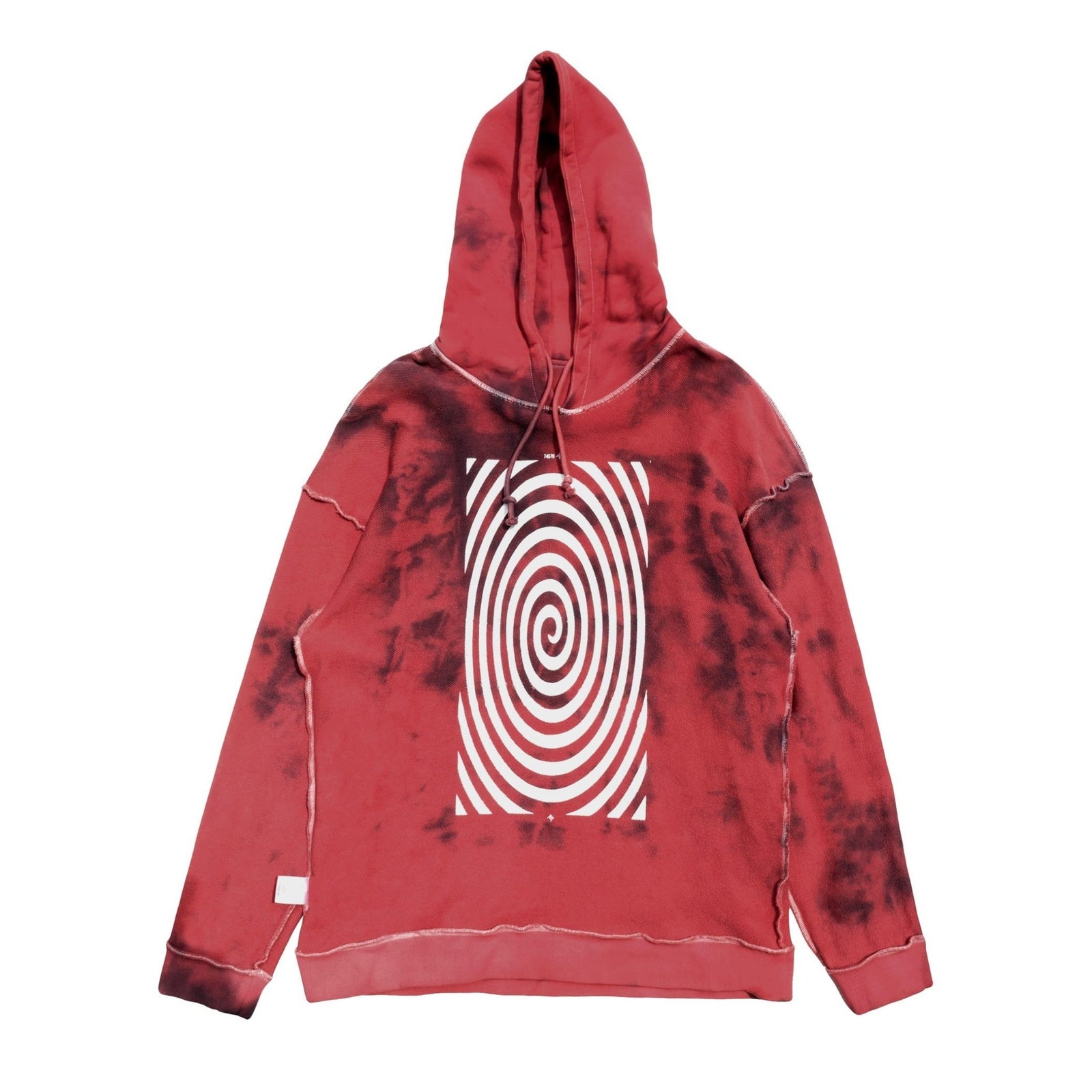 Premium 100% heavyweight cotton french terry hoodie featuring spiral artwork on front and back. Overdyed with organic dye in reddish colorway. Reversible.