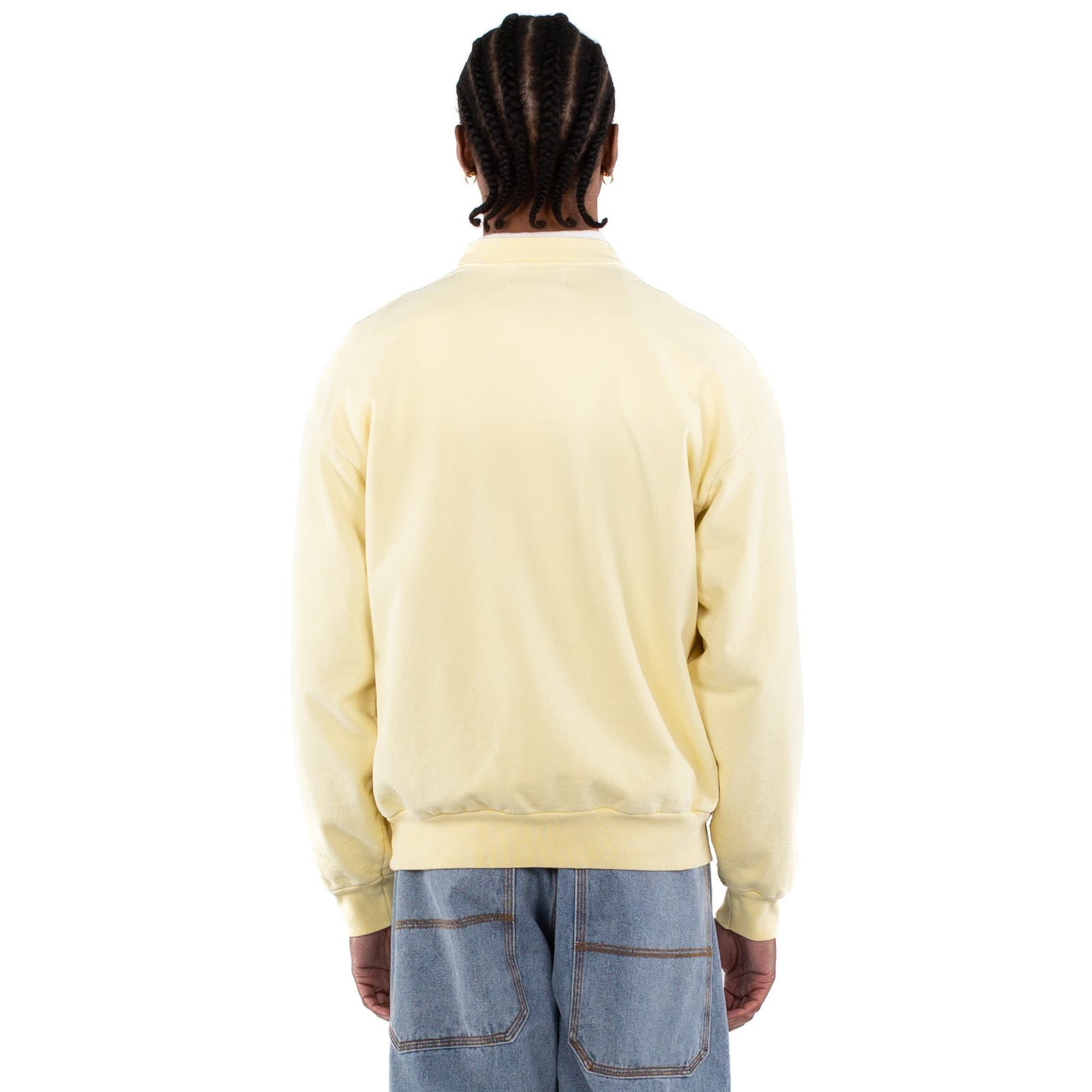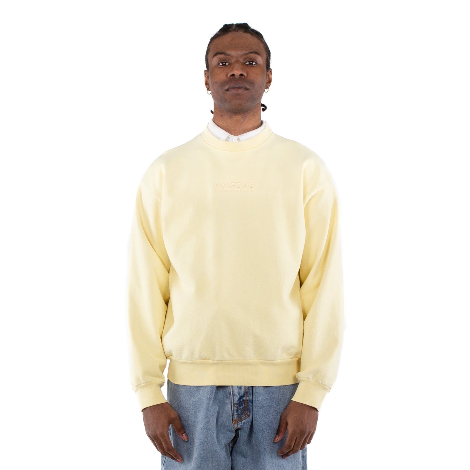 Sulfur dyed and stonewashed heavy fleece crewneck. Tonal embroidery logo at chest. 100% pre-shrunk cotton. Made in USA.